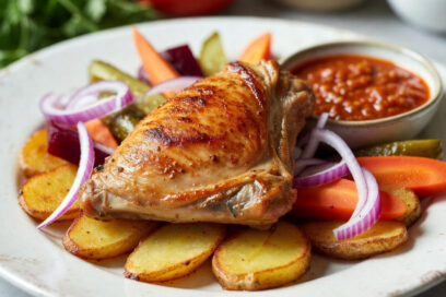 $28Juicy grilled chicken thigh served with pan-fried potatoes, vegetable pickles, red onions, and traditional Georgian tkemali sauce.