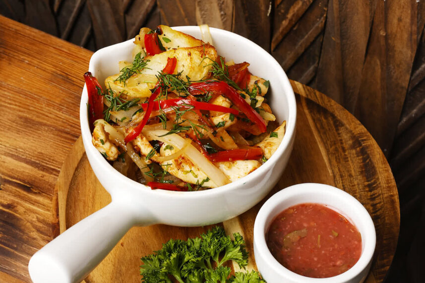 Crispy, golden fried potatoes tossed with aromatic spices, onions, and fresh herbs. (+$5 Mushroom/Chicken)