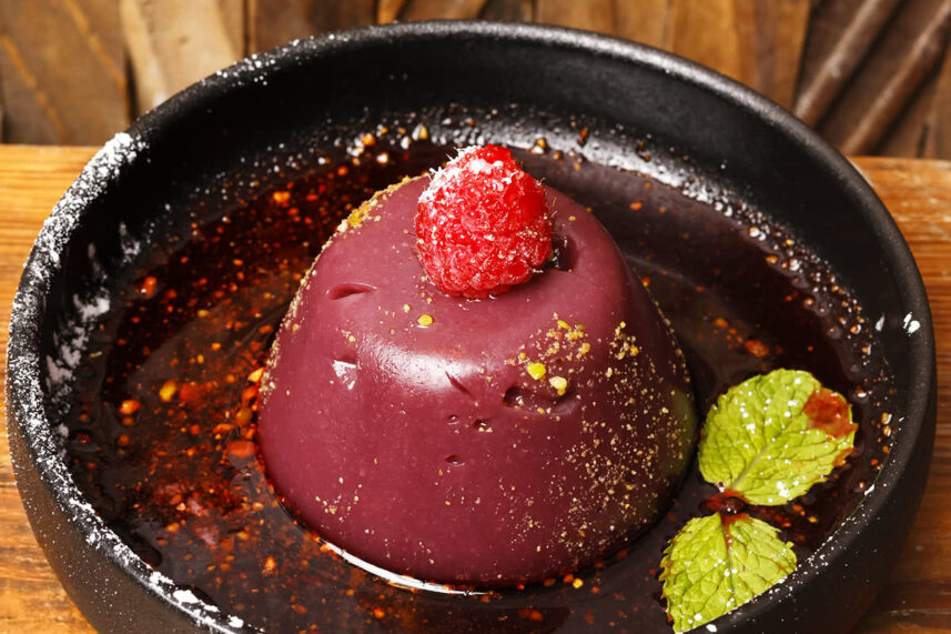 Georgian grape pudding made with fresh grape juice and cornmeal. Topped with walnuts.