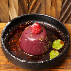 A warm dessert filled with lightly sweetened farmer’s cheese, topped with rich cherry sauce and whole cherries inside. Served hot with a drizzle of cherry juice for the perfect sweet finish.