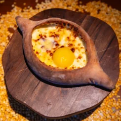 Spiced mashed bean-stuffed bread from Racha region. (Vegan option available)