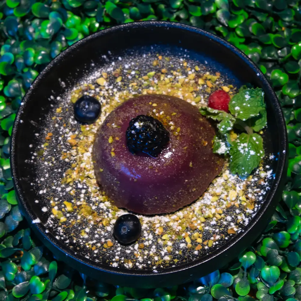 Georgian grape pudding made with fresh grape juice and cornmeal. Topped with walnuts.